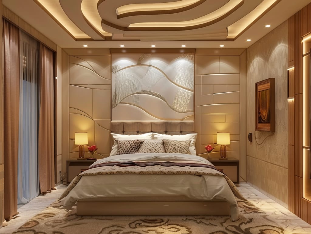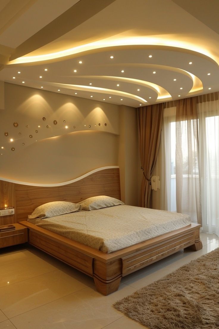 A false ceiling, also known as a suspended or dropped ceiling, is a decorative, secondary ceiling hung below the main structural one using a framework of metal or wood. It serves both aesthetic purposes, like creating a modern look with hidden lighting, and functional ones, such as concealing wires, ducts, and pipes, and providing better insulation and acoustics.